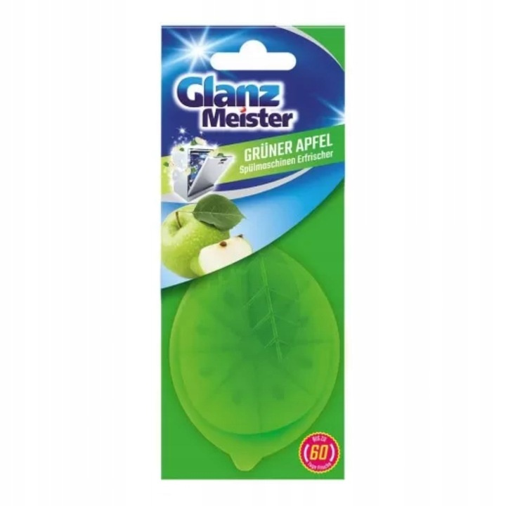 - Odświeżacz do zmywarki GlanzMeister o zapachu soczystego jabłka to rozwiązanie, które skutecznie eliminuje nieprzyjemne zapachy, zapewniając świeży i przyjemny aromat nawet do 60 cykli pracy zmywarki.