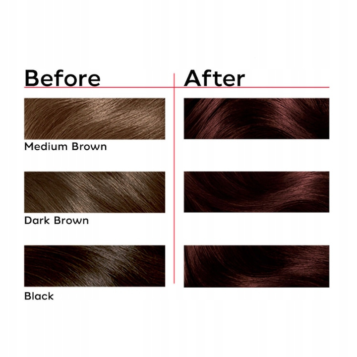 100% pokrycia siwych włosów. Kolor utrzymuje się do 8 tygodni.