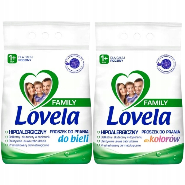 Proszek Lovela Family został stworzony z myślą o skórze wrażliwej oraz ze skłonnościami do alergii. Zmniejsza ryzyko podrażnień skóry i jest delikatny dla skóry oraz ubrań.