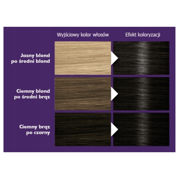 Długotrwała intensywność koloru i 100% pokrycia siwych włosów.