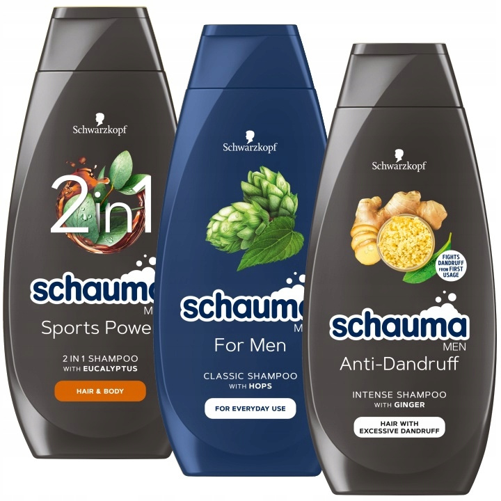 Przeciwłupieżowy szampon do włosów dla mężczyzn Schwarzkopf Schauma Men Anti-Dandruff z ekstraktem z imbiru i piroktonem olaminy zapobiega objawom łupieżu. Ulepszona formuła, ukoi skórę i otuli Twoje włosy gęstą pianą, by wydobyć z nich to co najlepsze od nasady aż po same końce!