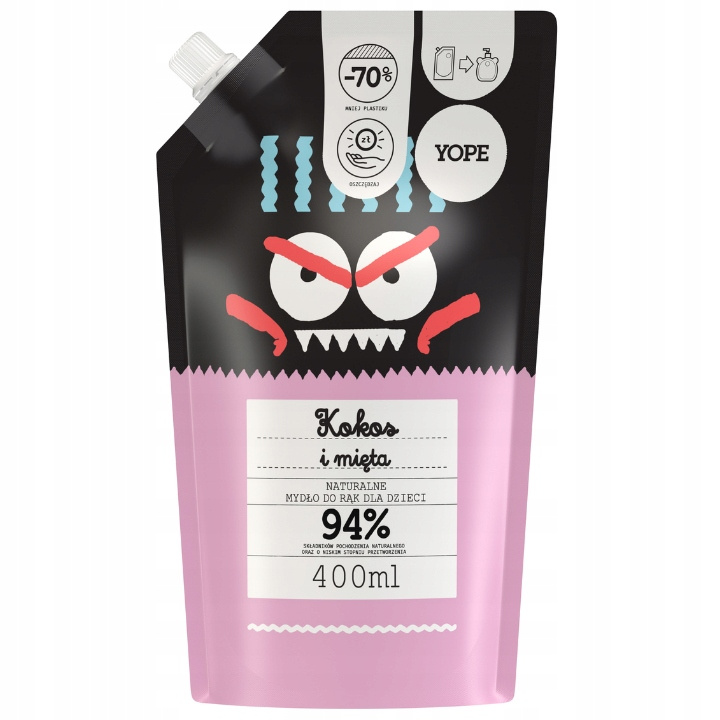 Yope Naturalne Mydło w Płynie dla Dzieci Kokos Mięta Refill 400ml